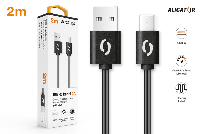 Kvalitní datové a nabíjecí USB kabely ALIGATOR s možností rychlého nabíjení 2A.