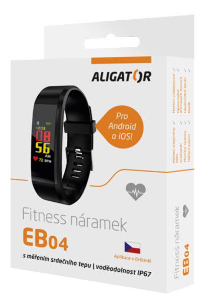 Fitness náramek EB04 černý, aplikace v češtině, IP67