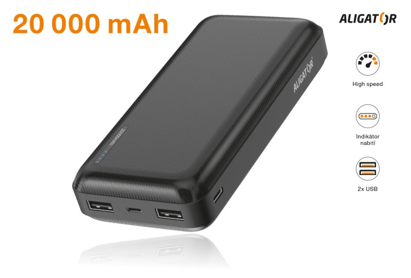 Kapacita 20 000 mAh Vás nezklame ani na dlouhých cestách a zcela postačí pro vícenásobné dobití telefonu. O stavu nabité baterie vás pak budou informovat LED diody, které najdete na horní straně.