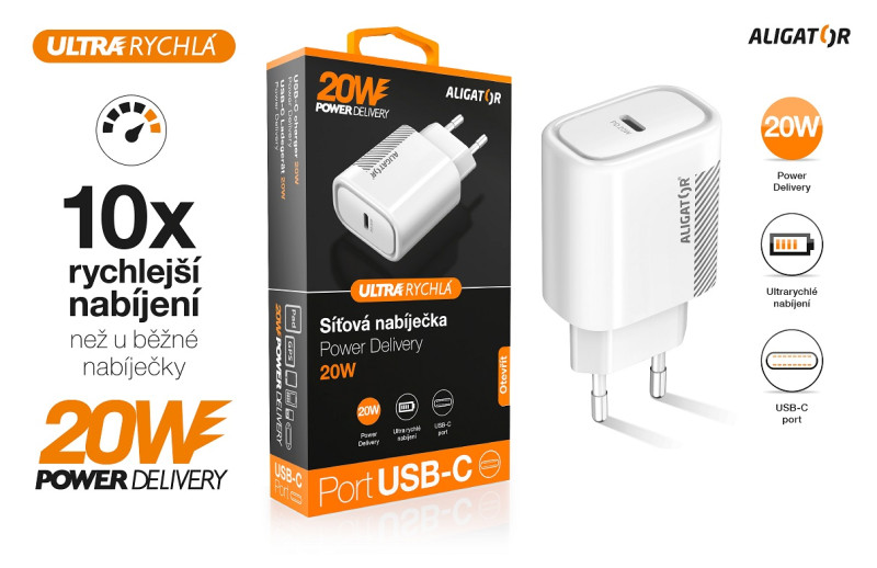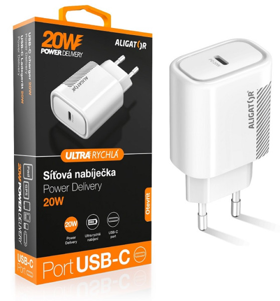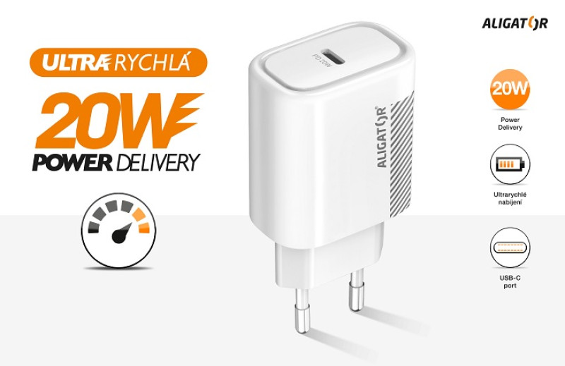 Chytrá síťová nabíječka ALIGATOR Power Delivery 20W, USB-C
