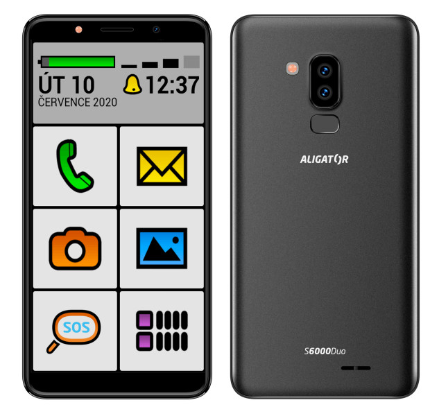 Štíhlé tělo s úzkými okraji dokonale ladí se zaoblenými hranami. Povrch je metalický, ve třech barevných odstínech. Elegantní černá, svěží modrá metalíza nebo exkluzivní zlatá metalíza. S6000 Senior vzhledově dokonale splyne s ostatními smartphony, takže na první pohled ani nepoznáte, že se jedná o speciální model pro seniory.