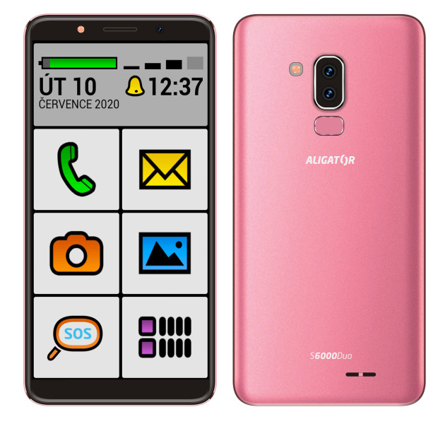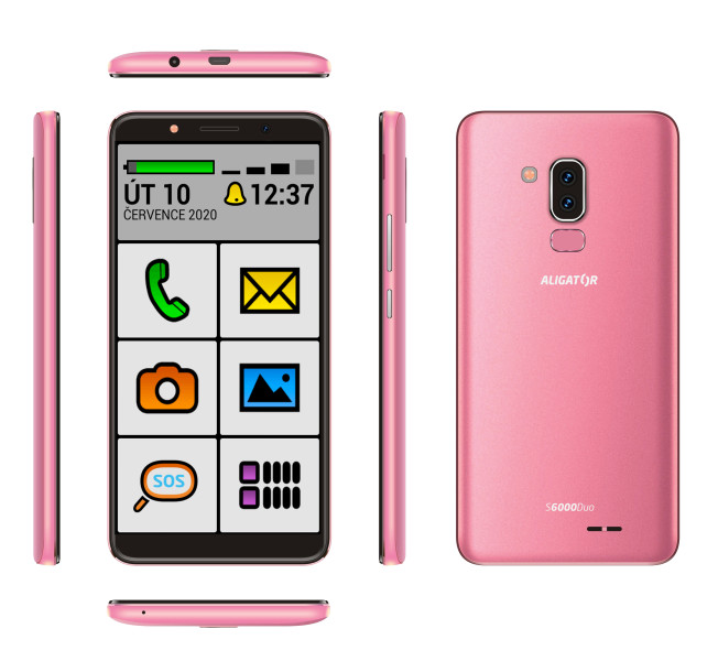 Štíhlé tělo s úzkými okraji dokonale ladí se zaoblenými hranami. Povrch je metalický, ve třech barevných odstínech. Elegantní černá, svěží modrá metalíza nebo exkluzivní zlatá metalíza. S6000 Senior vzhledově dokonale splyne s ostatními smartphony, takže na první pohled ani nepoznáte, že se jedná o speciální model pro seniory.
