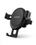 Gravitační univerzální držák pro mobilní telefony do auta ve velmi elegantním provedení nebrání řidiči ve výhledu a je kompatibilní s většinou mřížek ventilátorů.