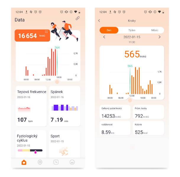 - Krokoměr, počet kalorií, ušlá vzdálenost