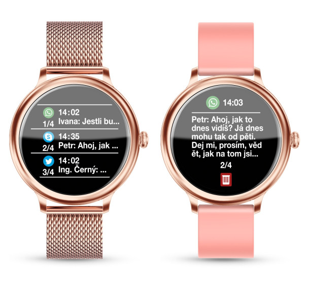 Hodinky Aligator Watch Grace nabízí přizpůsobitelné notifikace. Je jen na vás, zda zvolíte vibrace nebo zvuk. Nechte si zobrazit všechny notifikace z telefonu včetně příchozích hovorů i textu zpráv, s hodinkami Aligator Watch Grace vám neuteče žádná novinka z FB, WhtasAppu, SMS ani jiných aplikací.