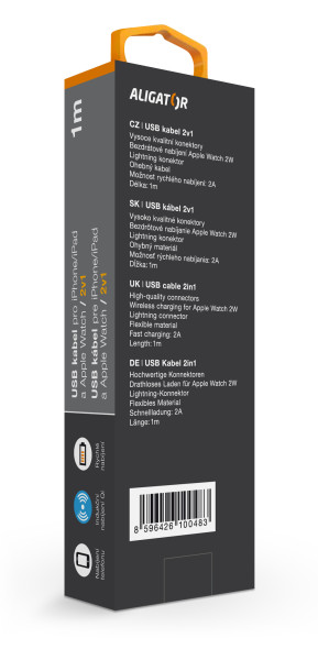 Kvalitní nabíjecí USB kabel ALIGATOR 2v1 pro iPhone/iPad a Apple Watch.
