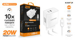 Výkonná síťová nabíječka řady „POWER DELIVERY“ v moderním bílém provedení s ultra rychlým USB-C portem o výkonu 20W.