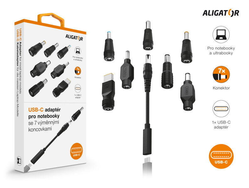 Miniaturní USB-C adaptér se 7 výměnnými konektory řady ALIGATOR POWER.