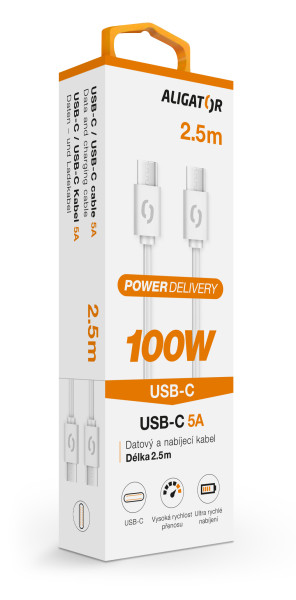 ALIGATOR POWER špičkový USB-C/USB-C kabel nejvyšší kvality, o výkonu 100W a možností nabíjení až 5A.