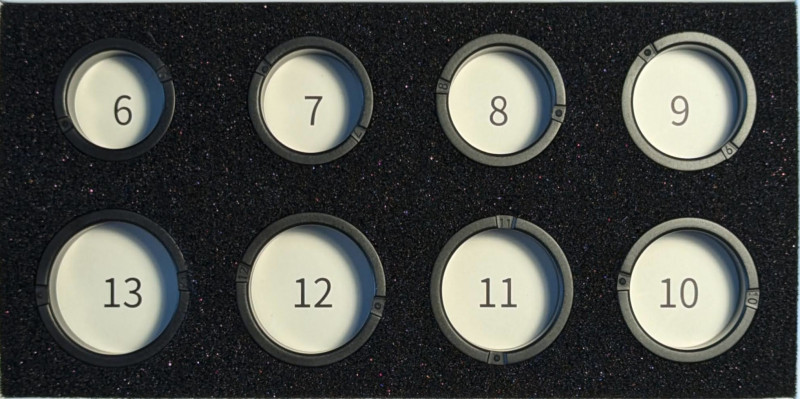 Obsahuje 8ks zkušebních kroužků ve velikostech 6 - 13.