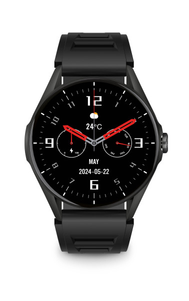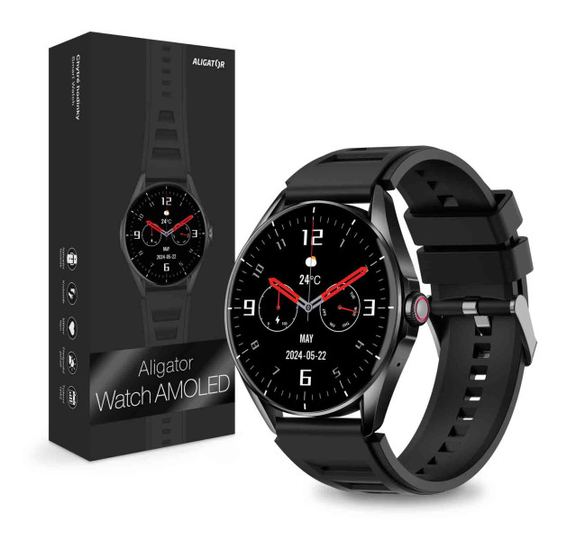 Aligator Watch Amoled jsou v dostání v kovově černé a stříbrné barvě. Samozřejmostí jsou dva designově sladěné silikonové řemínky v balení.