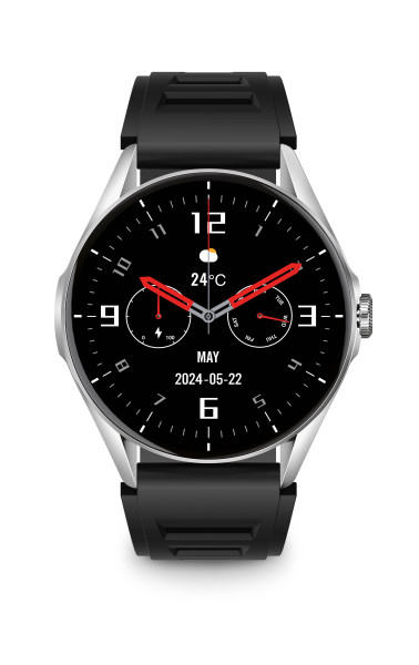 Aligator Watch Amoled jsou v dostání v kovově černé a stříbrné barvě. Samozřejmostí jsou dva designově sladěné silikonové řemínky v balení.