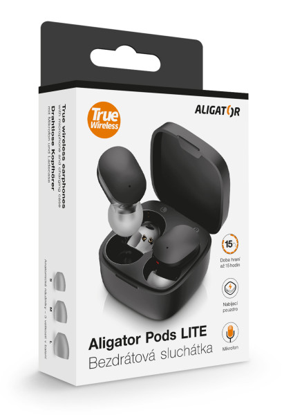 | Obsah balení: | Bluetooth sluchátka Aligator Pods LITE 3 velikosti náušníků Nabíjecí kabel Návod k použití |