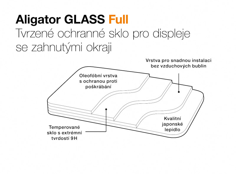 Oproti jiným běžným sklům na trhu jsou ochranná skla Aligator Glass vyráběna speciální technologií, která umožňuje zmenšit tloušťku skla až na 0,25 mm při stejných nebo dokonce ještě lepších ochranných vlastnostech skla. Díky tomu jsou skla lehčí, odolnější, displej je čitelnější a ochranná pouzdra na telefony tak lépe pasují.