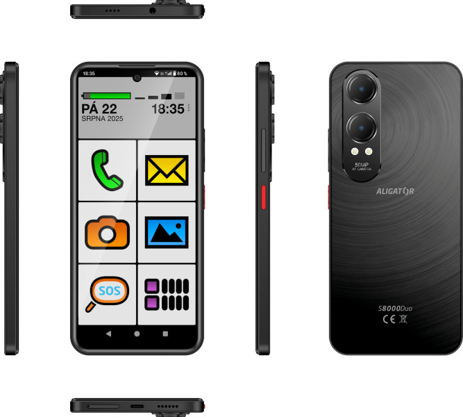 Aligator S8000 Senior je navržen s důrazem na jednoduchost. Velký displej a přehledné rozhraní usnadňují používání i úplným začátečníkům. Základní funkce jako volání, zprávy, fotoaparát nebo internet tak zvládnete pohodlně a bez zbytečných složitostí.