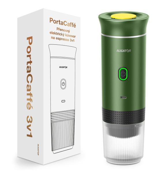 | Obsah balení: | - Kávovar ALIGATOR PortaCaffé - Sada 3 adaptérů pro kapsle Nespresso, Dolce Gusto a mletou kávu - Odměrka na kávu - Návod k použití - Nabíjecí kabel USB-A / USB-C |