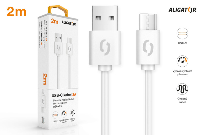 Kvalitní datové a nabíjecí USB kabely ALIGATOR s možností rychlého nabíjení 2A.