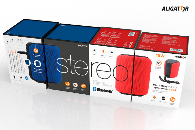 Bluetooth reproduktor ALIGATOR ABS3 představujeme ve třech stylových barevných provedeních a nabízíme tím uživateli možnost kombinace barev dle svého osobního vkusu.