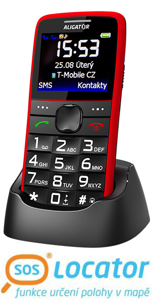 Klasický telefon pro seniory s SOS tlačítkem, možností obrázkového tel. seznamu a funkcí určení polohy SOS locator.