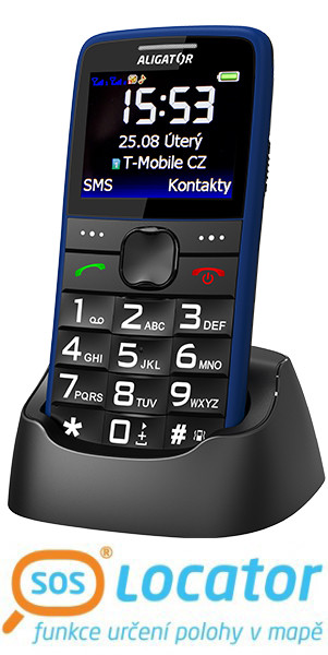 Klasický telefon pro seniory s SOS tlačítkem, možností obrázkového tel. seznamu a funkcí určení polohy SOS locator.