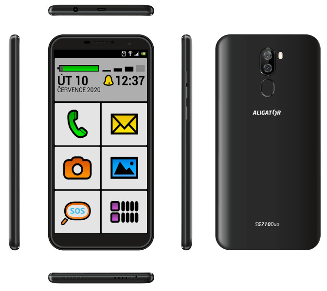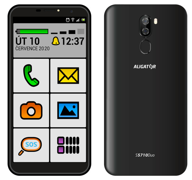 ALIGATOR S5710 Senior je vybaven moderním LCD displejem s technologií IPS, která umožňuje velmi široký pozorovací úhel a perfektní kontrast a barvy. Oproti starším typům displejů má poměr stran 18:9 což v kombinaci s vysokým rozlišením HD+ umožňuje optimální využití plochy displeje. Pro pohodlné používání lze také nastavit velikost písma, ale i celkovou velikost zobrazení všech grafických prvků.