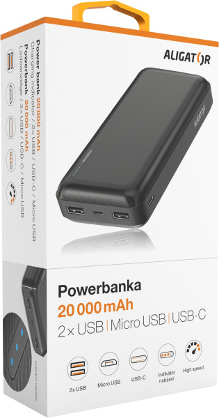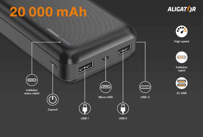 Kapacita 20 000 mAh Vás nezklame ani na dlouhých cestách a zcela postačí pro vícenásobné dobití telefonu. O stavu nabité baterie vás pak budou informovat LED diody, které najdete na horní straně.