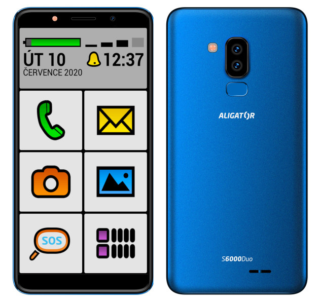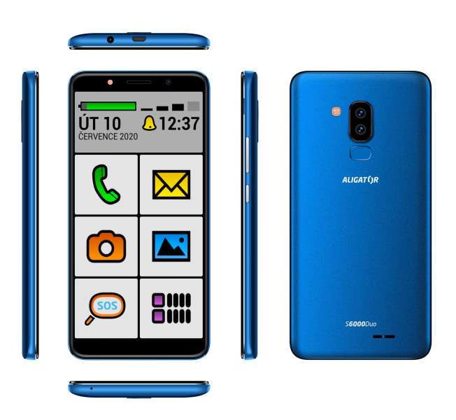 Štíhlé tělo s úzkými okraji dokonale ladí se zaoblenými hranami. Povrch je metalický, ve třech barevných odstínech. Elegantní černá, svěží modrá metalíza nebo exkluzivní zlatá metalíza. S6000 Senior vzhledově dokonale splyne s ostatními smartphony, takže na první pohled ani nepoznáte, že se jedná o speciální model pro seniory.