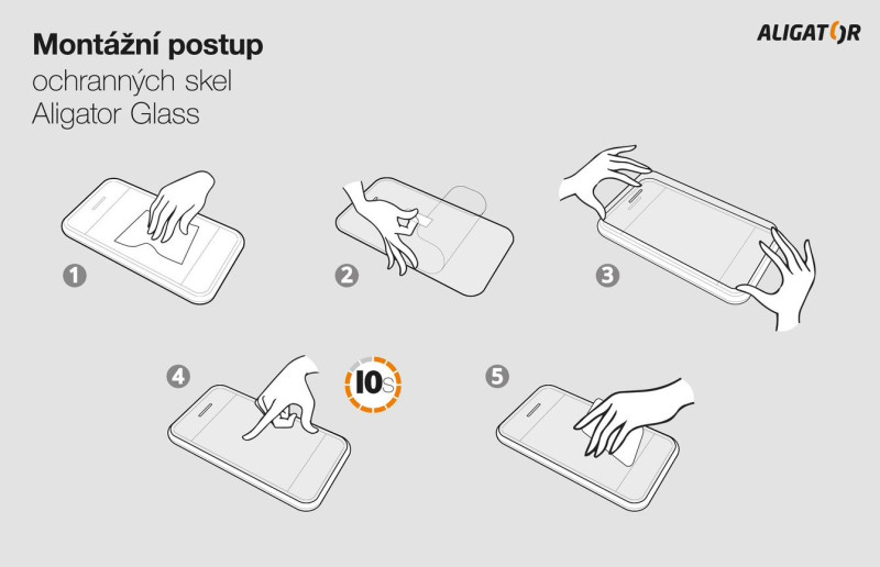 Ochranná skla Aligator Glass se díky své konstrukci, kvalitním lepidlům a unikátní technologii dobře lepí, nezanechávají bublinky a lze je opětovně sejmout a znovu použít. Pro pohodlnou montáž je balení doplněno čistící a leštící utěrkou a jednoduchým návodem, podle kterého zvládne montáž skla každý.