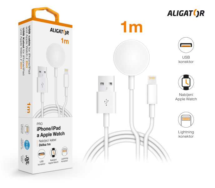 Kvalitní nabíjecí USB kabel ALIGATOR 2v1 pro iPhone/iPad a Apple Watch.