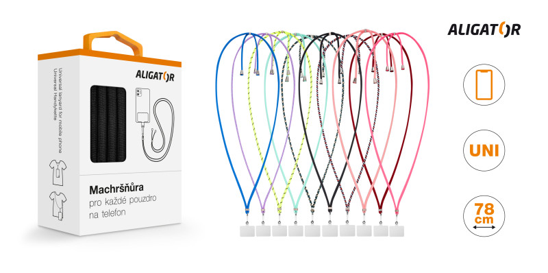 Machršňůra Aligator se skládá ze tří důležitých částí. Při volbě karabiny jsme si dali záležet na výběru vhodného a pevného materiálu. Plastová vložka je z kvalitního měkčeného plastu, který díky pevnosti splňuje všechny limity a zároveň nepoškrábe Váš mobilní telefonu. Při výběru textilního vlákna jsme šli cestou většího množství úpletu a rozhodně se s ním nešetřily. Šňůrka je díky tomu velice pohodlným společníkem na všech cestách. se
