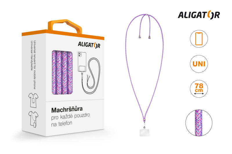 Machršňůra Aligator se skládá ze tří důležitých částí. Při volbě karabiny jsme si dali záležet na výběru vhodného a pevného materiálu. Plastová vložka je z kvalitního měkčeného plastu, který díky pevnosti splňuje všechny limity a zároveň nepoškrábe Váš mobilní telefonu. Při výběru textilního vlákna jsme šli cestou většího množství úpletu a rozhodně se s ním nešetřily. Šňůrka je díky tomu velice pohodlným společníkem na všech cestách. se