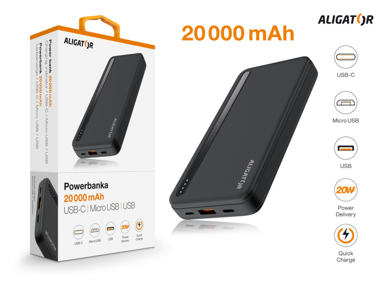 Powerbanka ALIGATOR PBAL2050, Power Delivery 20W, 20 000mAh