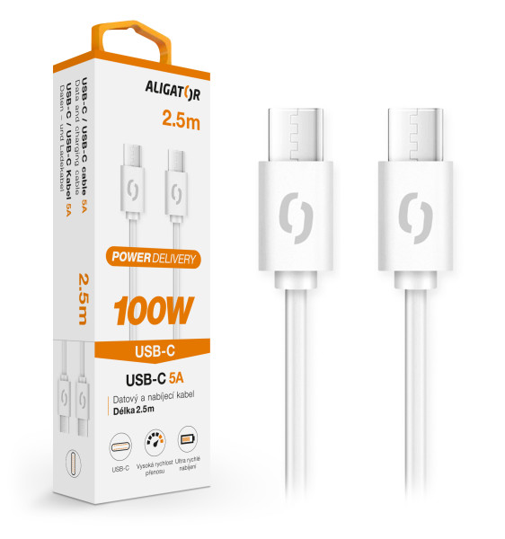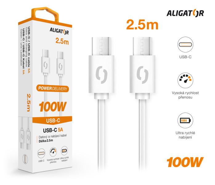 ALIGATOR POWER špičkový USB-C/USB-C kabel nejvyšší kvality, o výkonu 100W a možností nabíjení až 5A.