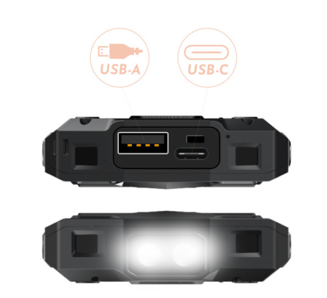 R45 vám na cestách nabídne až 14 dní pohotovostní doby díky své 2500 mAh baterii. Navíc disponuje funkcí powerbanky pro nabíjení ostatních zářízení. Kdykoliv a kdekoliv potřebujete osvětlení, poslouží vám velmi výkoná svítilna se dvěma led prvky. Pro snadné nabíjení a přenos dat je telefon vybaven moderním USB-C konektorem.