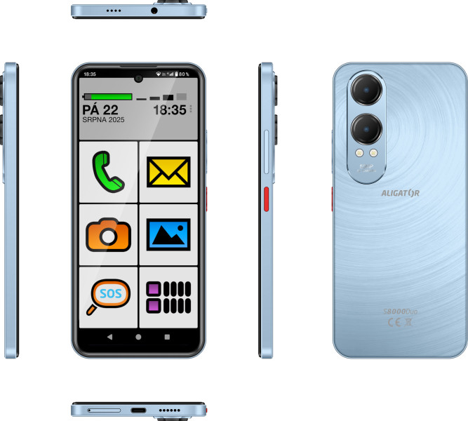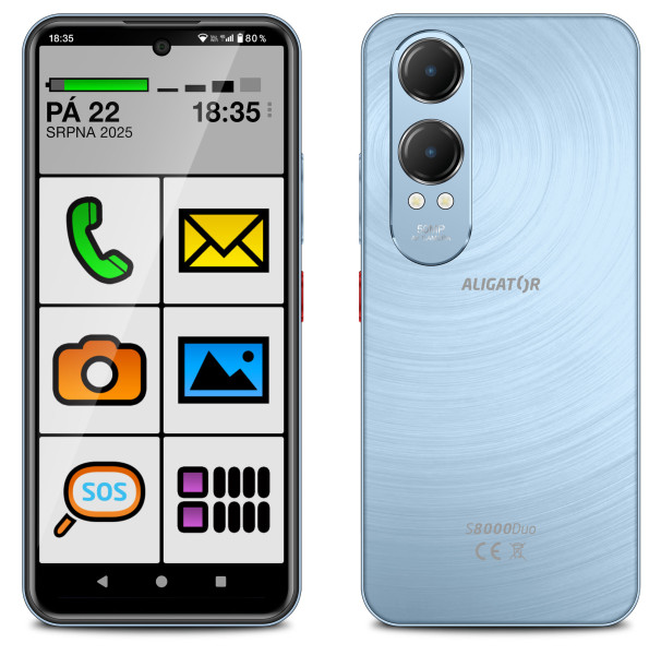 Aligator S8000 Senior je navržen s důrazem na jednoduchost. Velký displej a přehledné rozhraní usnadňují používání i úplným začátečníkům. Základní funkce jako volání, zprávy, fotoaparát nebo internet tak zvládnete pohodlně a bez zbytečných složitostí.
