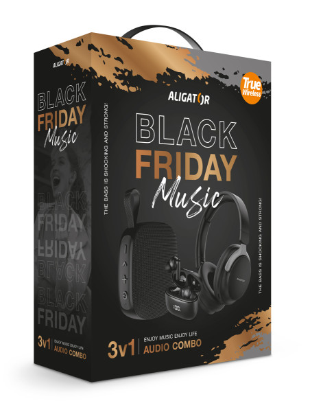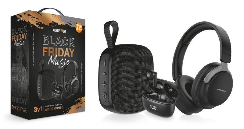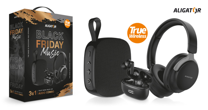 Dárkový set Aligator Audio Combo spojuje bezdrátový reproduktor P10, náhlavní sluchátka BH193 a TWS sluchátka Pods PRO 3. Nabízí pohodlí, čistý zvuk a nejnovější Bluetooth 5.4 pro snadné a stabilní připojení k jakémukoli zařízení bez výpadků signálu.