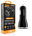 Chytrá nabíječka do auta ALIGATOR Power Delivery 20W, USB-C + USB-A, černá